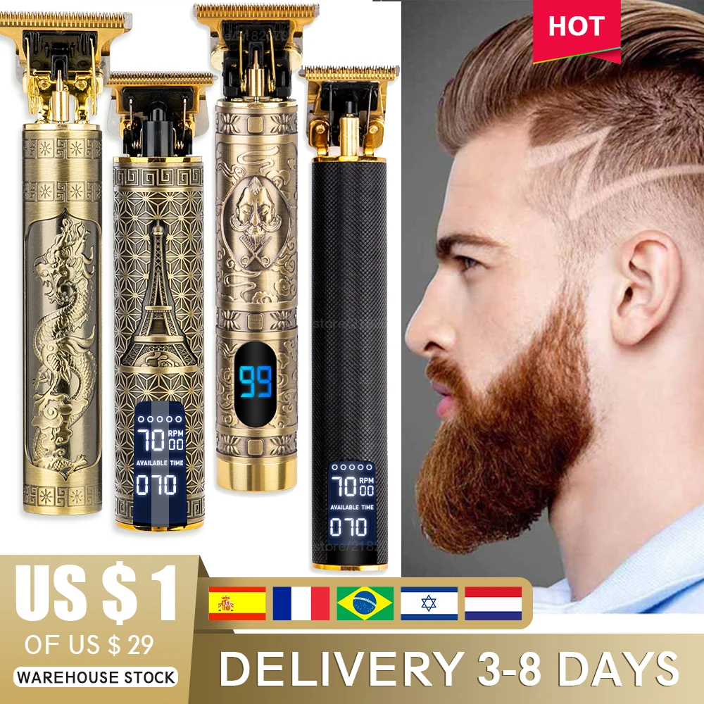 Name: Cortadora de pelo eléctrica para hombre, afeitadora LCD de 0mm, recortadora profesional para Barbero, Máquina para cortar cabello recargable T9 USB